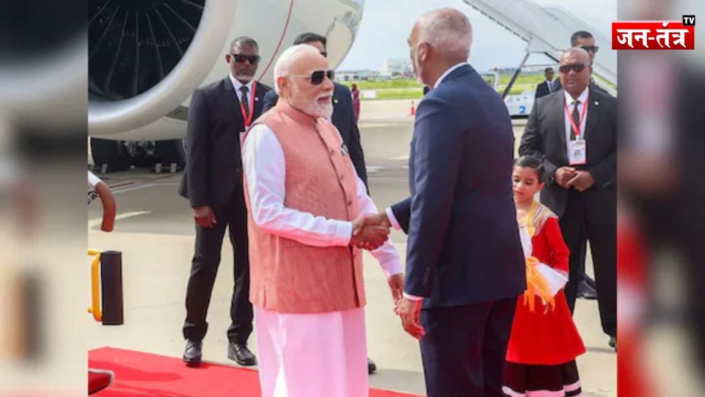 PM Modi Maldives Visit: मालदीव दौरे पर पहुंचे प्रधानमंत्री नरेन्द्र मोदी का माले एयरपोर्ट पर मालदीव के राष्ट्रपति मोहम्मद मुइज्जू खुद एयरपोर्ट पर पहुंचे और प्रधानमंत्री मोदी का गर्मजोशी से स्वागत किया। जिसके बाद अब संभावना है कि दोनों देशों के संबंध, जो मुइज्जू के राष्ट्रपति बनने के बाद खराब होने लगे थे, वो फिर से सुधर गये हैं। राष्ट्रपति मुइज्जू के साथ-साथ मालदीव सरकार के कई शीर्ष मंत्री, जिनमें विदेश मंत्री, रक्षा मंत्री, वित्त मंत्री और गृह सुरक्षा मंत्री प्रधानमंत्री मोदी का स्वागत करने के लिए एयरपोर्ट पर मौजूद थे। माले में भारतीय झंडों और “प्रधानमंत्री नरेंद्र मोदी का गर्मजोशी से स्वागत” करने के लिए पोस्टरों से शहर को सजाया गया था। इससे साफ संकेत है कि द्विपक्षीय रिश्तों को नई ऊर्जा देने के लिए दोनों देश तैयार है।